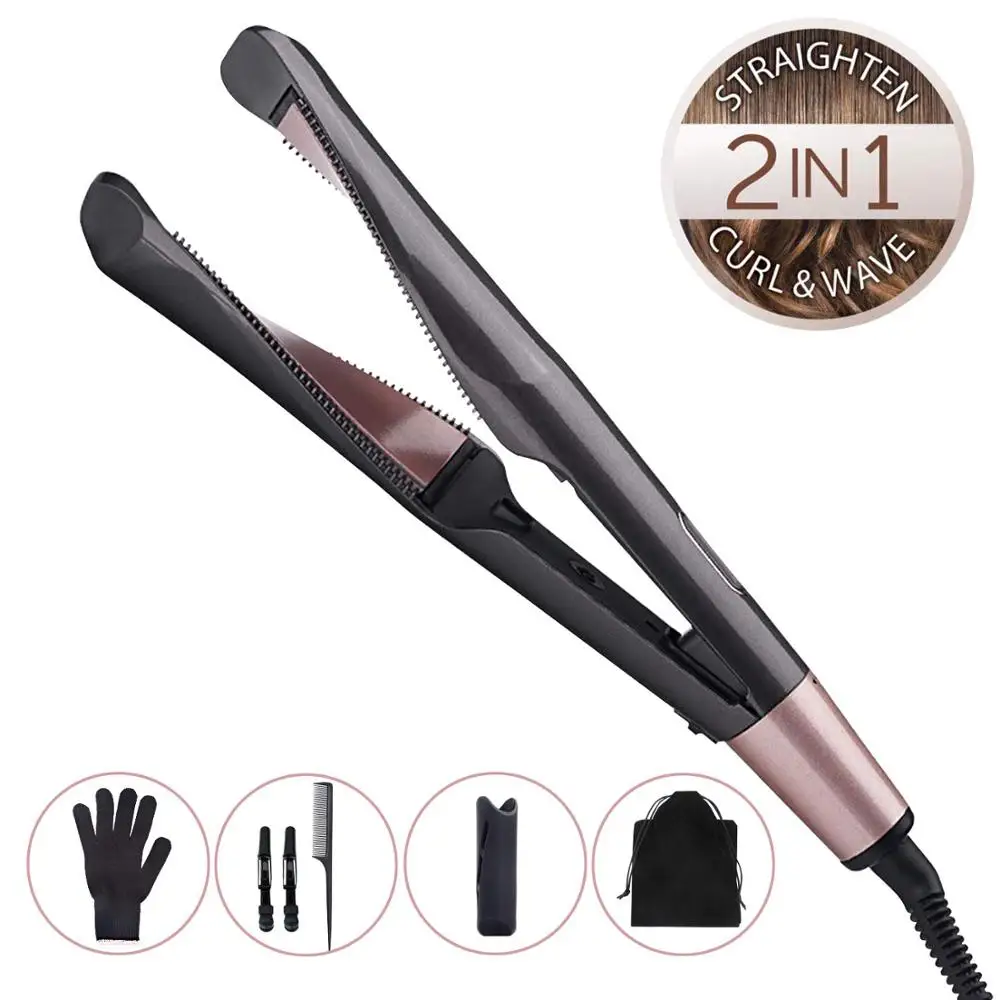 Special Offer Professionnel 2 en 1 bigoudi et lisseur torsion fer à friser salon de coiffure fers plats styler Tourmaline céramique LED Discount 23% Today!
