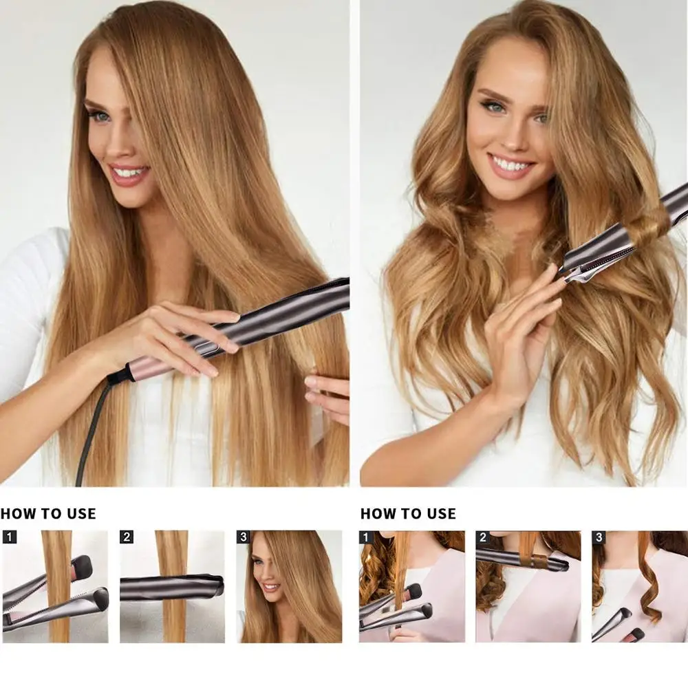 Product Name: Professionnel 2 en 1 bigoudi et lisseur torsion fer à friser salon de coiffure fers plats styler Tourmaline céramique LED