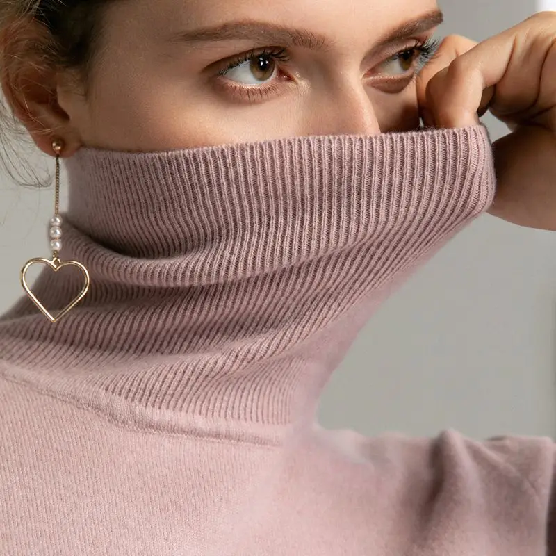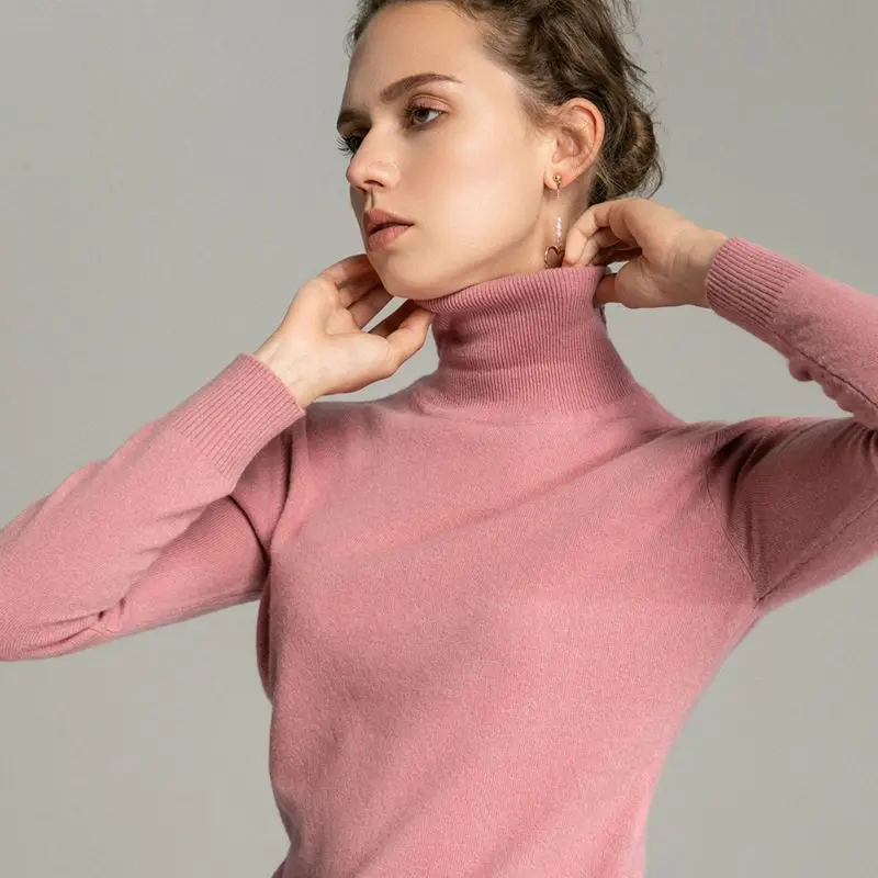 Product Name: Tendance Couleurs Femmes 100% Réel Laine Mérinos Pull À Col Roulé femme Solide Col Pulls top en tricot Femmes Pull
