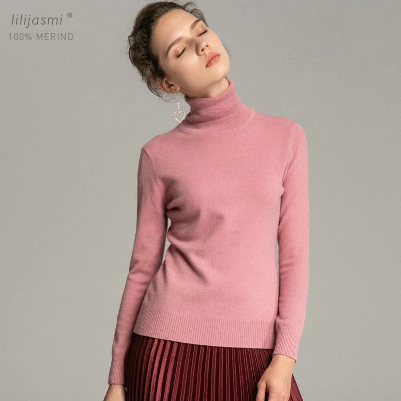 Special Offer Tendance Couleurs Femmes 100% Réel Laine Mérinos Pull À Col Roulé femme Solide Col Pulls top en tricot Femmes Pull Discount 25% Today!