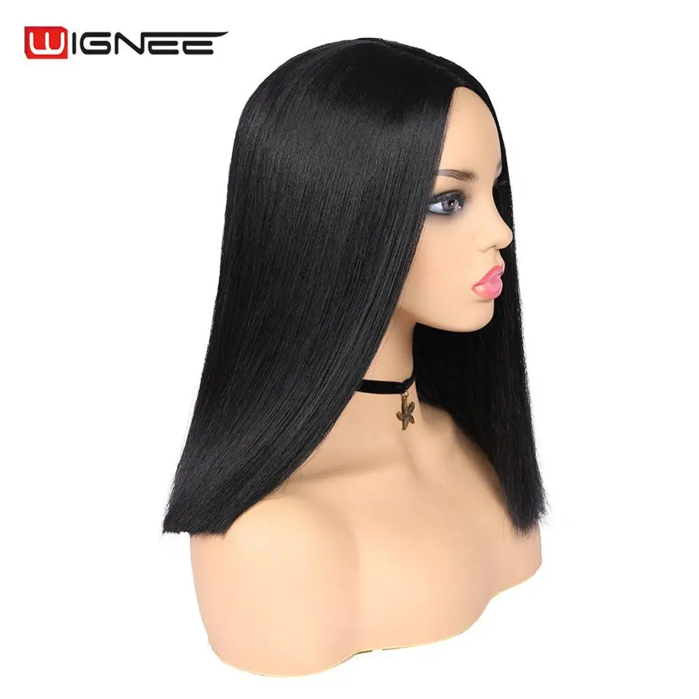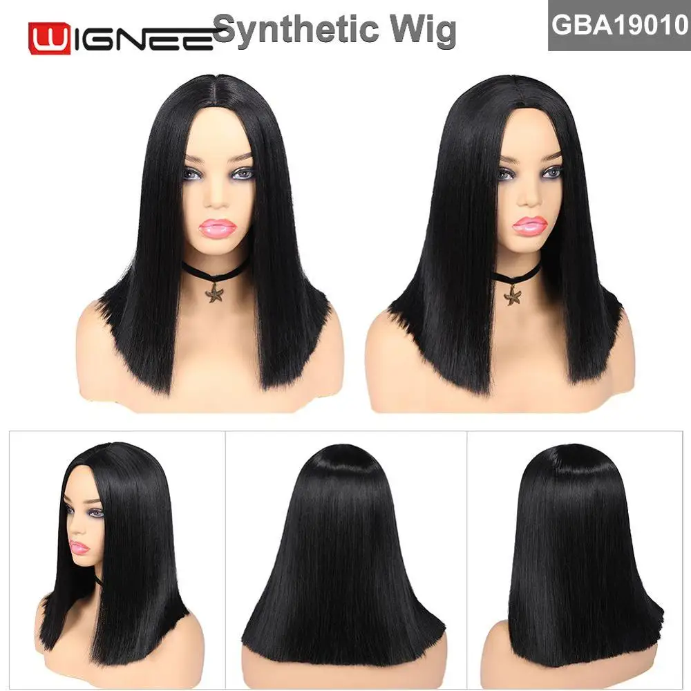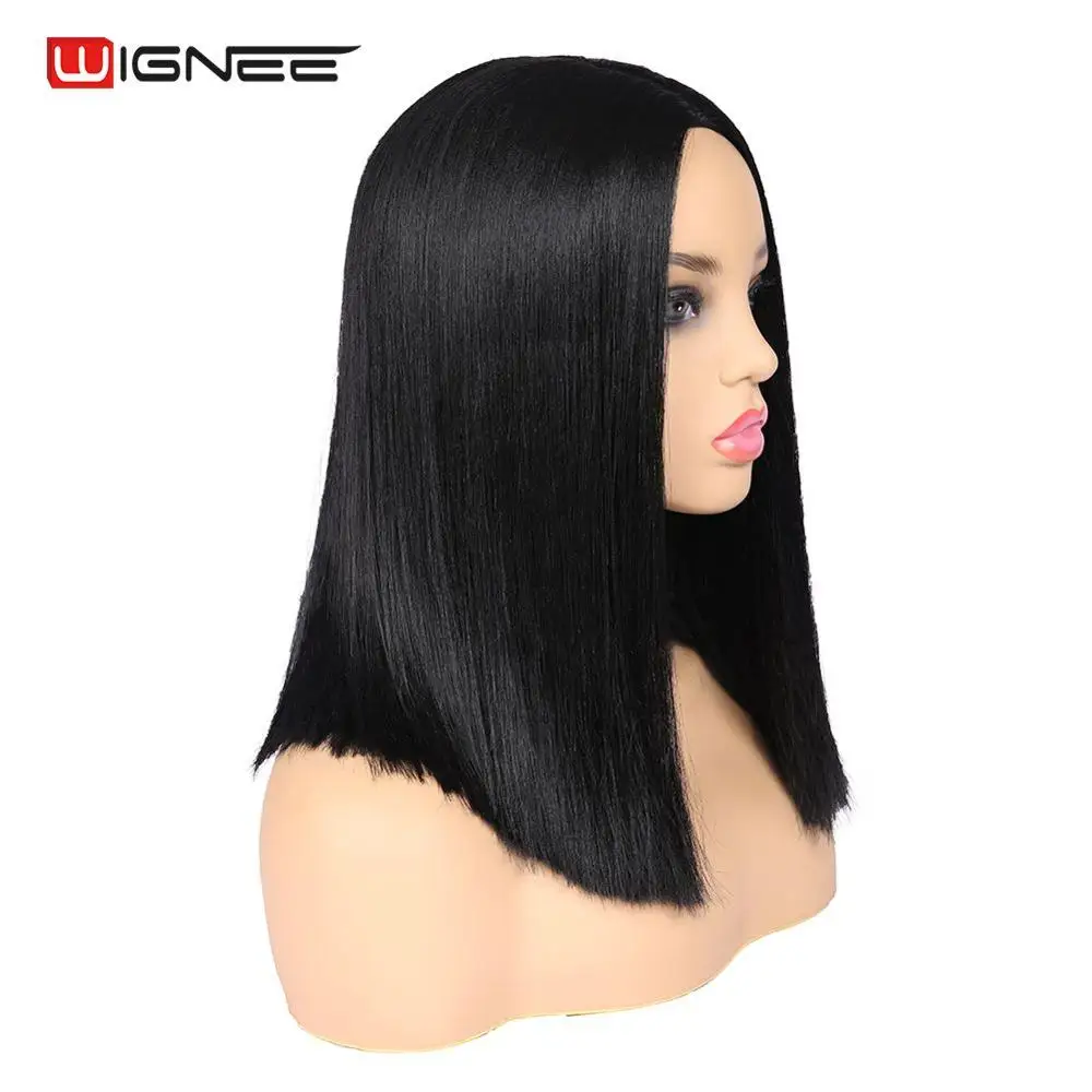 Special Offer Wignee naturel noir cheveux courts raides perruques synthétiques pour les femmes résistant à la chaleur Yaki cheveux moelleux rose brun blond naturel perruque Discount 33% Today!