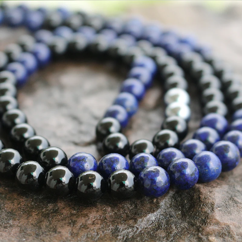 Product Name: 100% 8mm, 6mm, 4mm, perles naturelles, Lapis, Onyx noir, JapaMala, collier de Yoga, bijoux spirituels, méditation, 108 perles de Mala