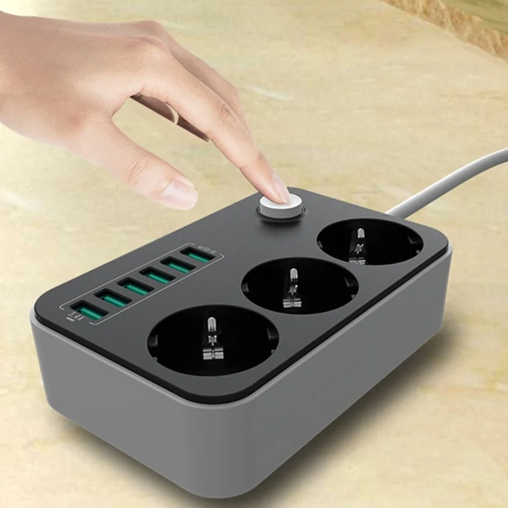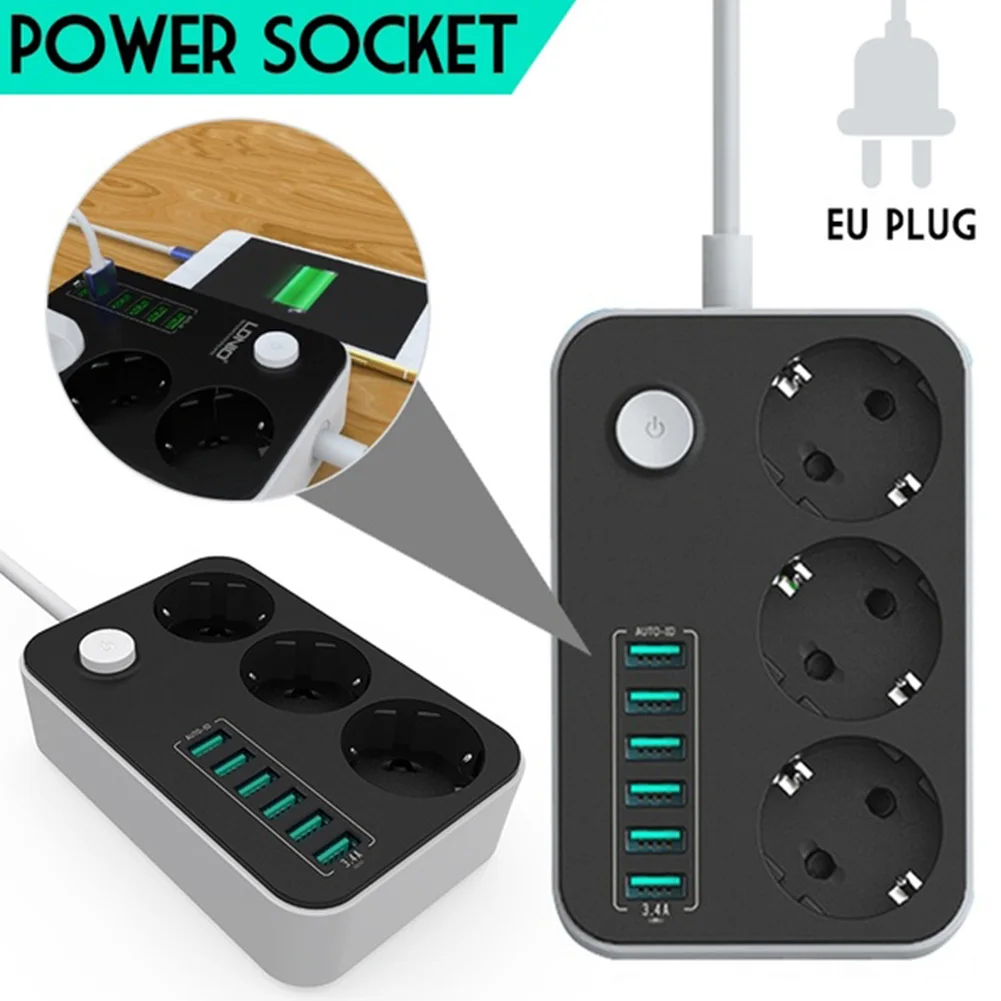 Product Name: 6 Ports USB prise chargeur Extension multiprise Ports de charge 2500W 10A multiprise rallonge EU prise de courant pour prises