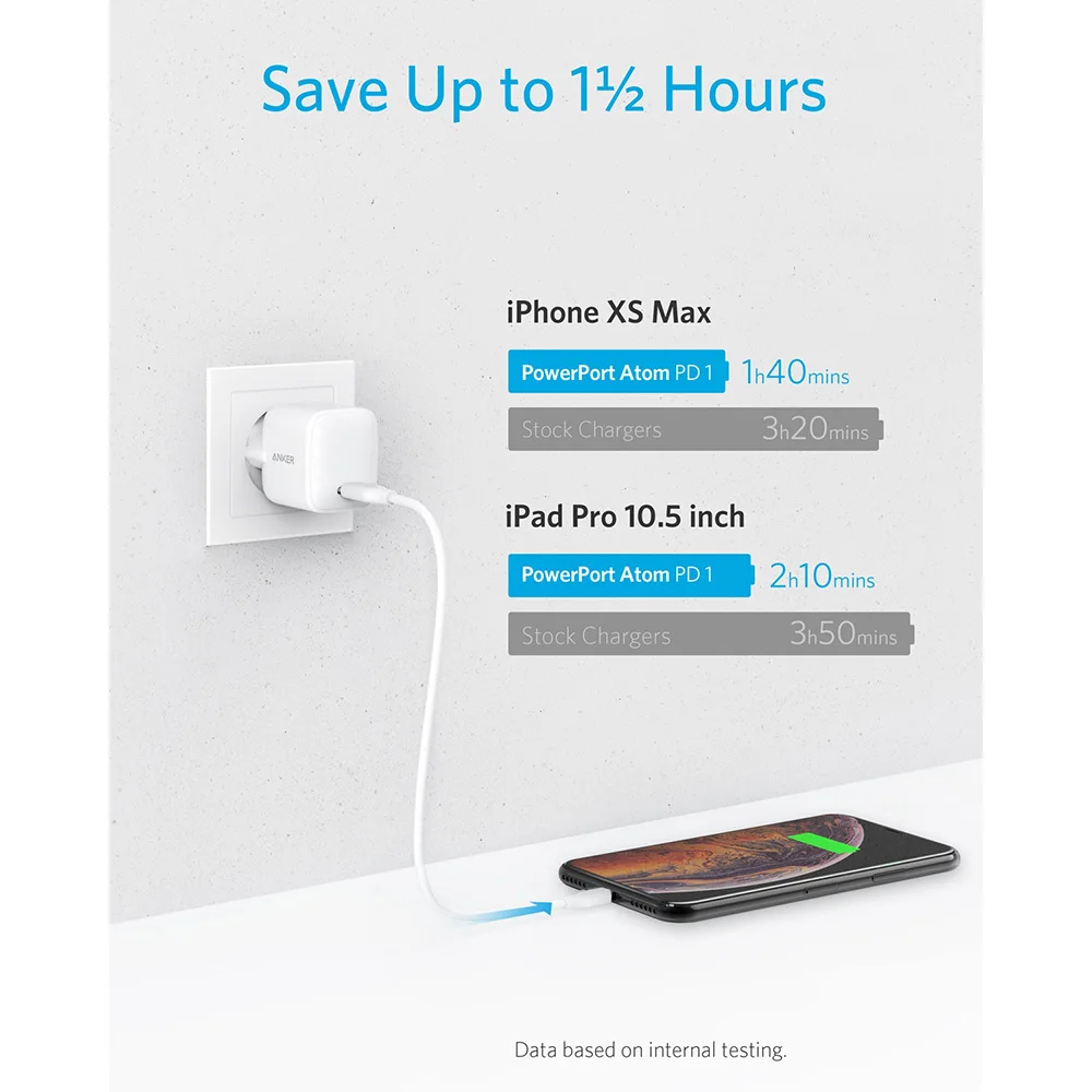 Product Name: Chargeur mural Anker 30W Ultra Compact type c avec alimentation, PowerPort Atom PD 1 pour iPhone Xs Max XR, iPad, MacBook, Galaxy etc.