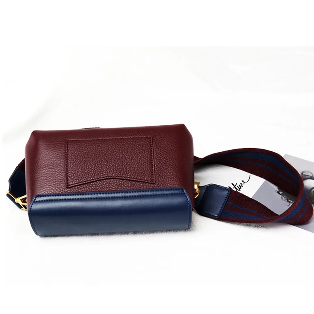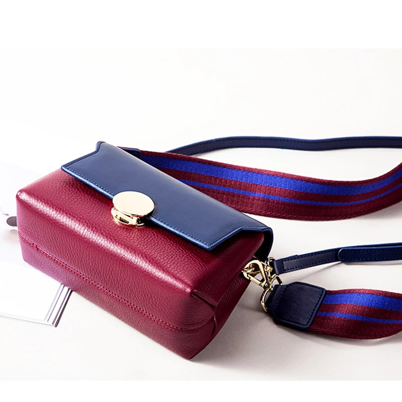 Product Name: Mode 100% en cuir véritable femmes Messenger sac contraste couleur dames bandoulière 2 sangles Bolso Mujer larges bretelles sac à bandoulière