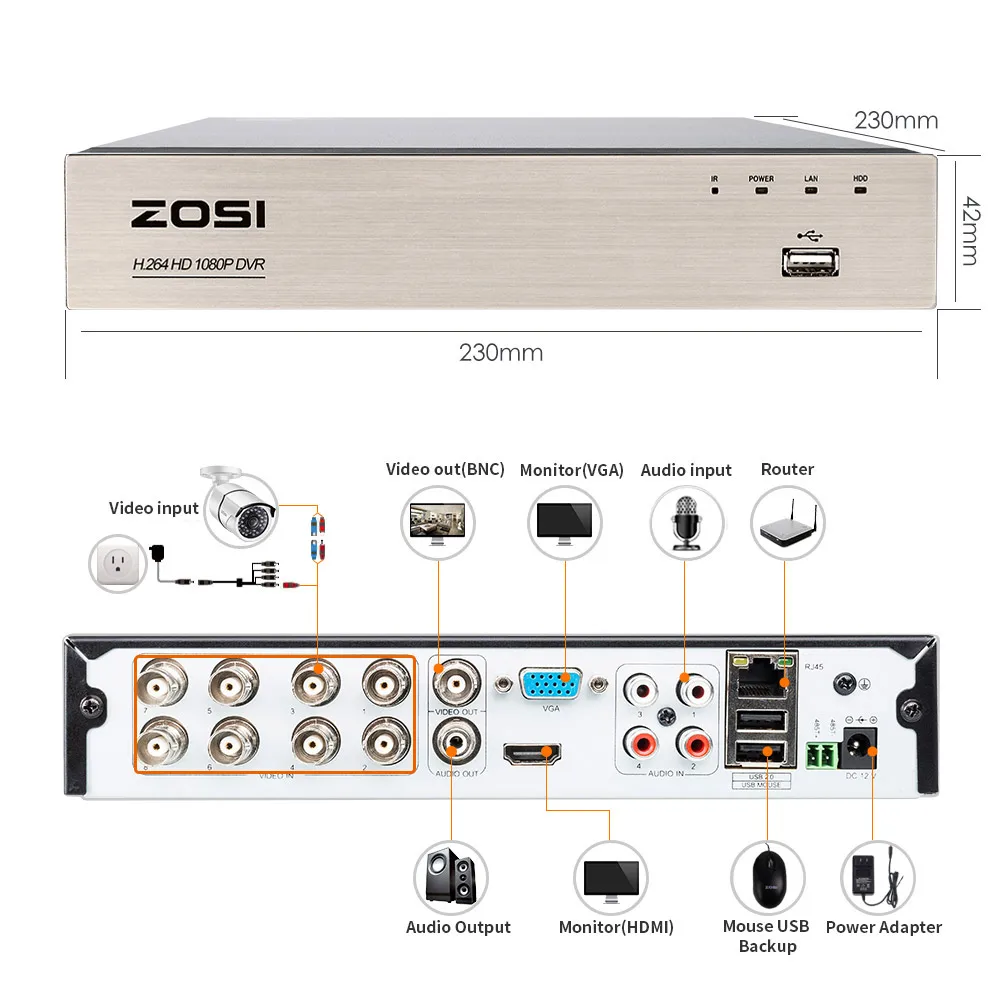 Product Name: Kit de système de caméras de sécurité ZOSI HD TVI 8CH 1080P avec Vision nocturne de jour de 8*2.0MP