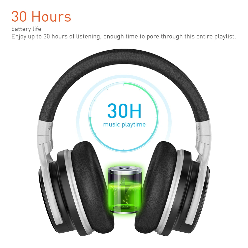 . (44% Off) Achat Meidong E7B Bluetooth casque actif suppression du bruit casque sans fil casque 30 heures sur l oreille avec microphone basses profondes Pas Cher Prix.