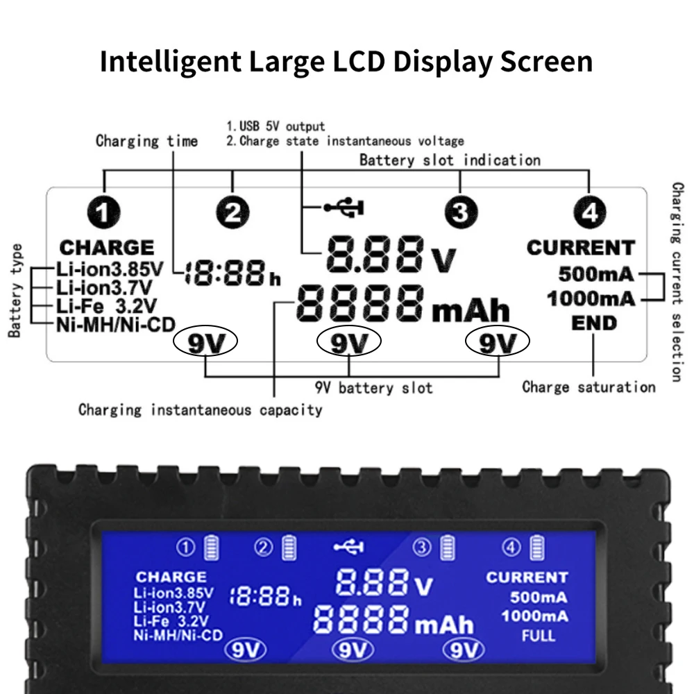 Product Name: Chargeur de batterie 4 fentes 18650 multi fonction Li ion li fe Ni MH ni cd chargeur intelligent pour pile AA AAA 18650 26650 6F22 16340 9 V