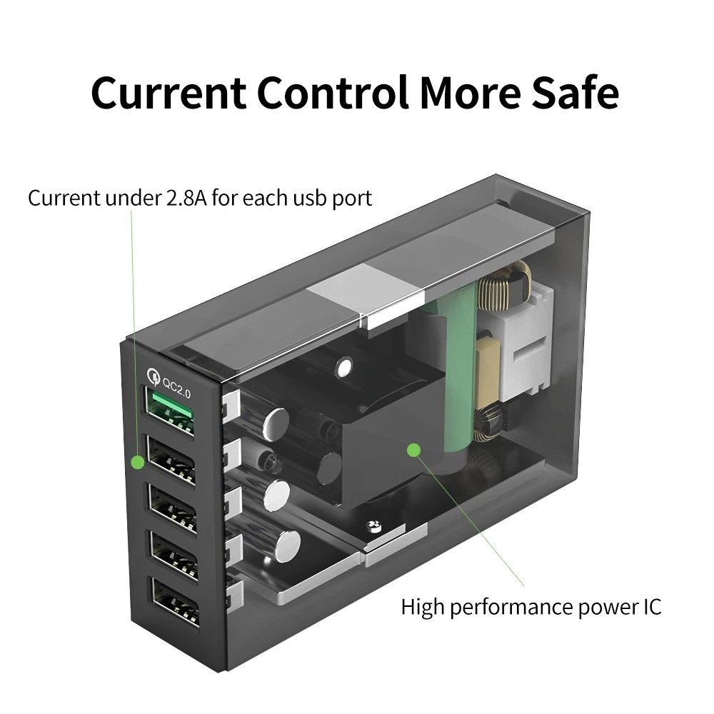 Product Name: ORICO QC 2.0 chargeur rapide avec 6 Ports de charge USB chargeur de bureau intelligent 5V10A 50W sortie Max pour téléphone portable chargeur USB