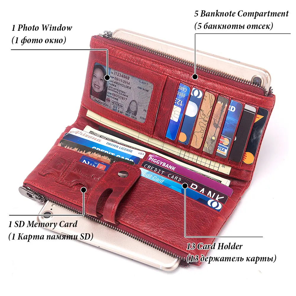 Product Name: KAVIS rouge 100% en cuir véritable femmes portefeuille femme porte monnaie Hasp Portomonee embrayage sac d argent dame porte carte longue qualité