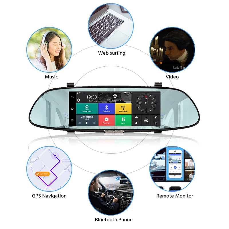 Product Name: E ACE Android GPS Navigation voiture Dvr 3G Wifi caméra 7 pouces GPS navigateurs 1080P enregistreur vidéo rétroviseur