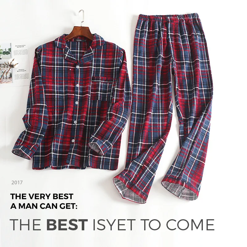 Special Offer Nouveau 100% coton hommes automne et hiver à manches longues pantalon pyjama costume rouge Plaid vêtements de nuit en flanelle velours doux vêtements ensemble Discount 10% Today!