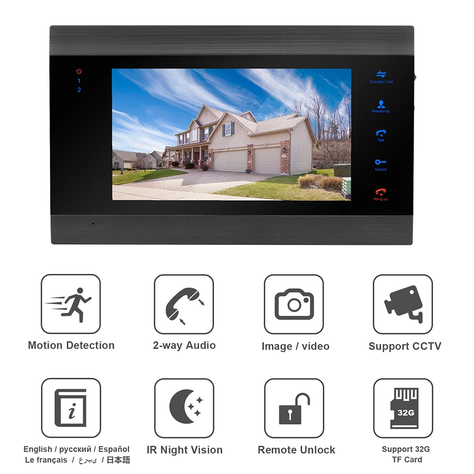 Product Name: HomeFong Vidéo Porte téléphone Filaire Porte Interphone pour Home Video Intercom Soutien Détection de Mouvement Enregistrement Porte Caméra 7 pouces Interphones