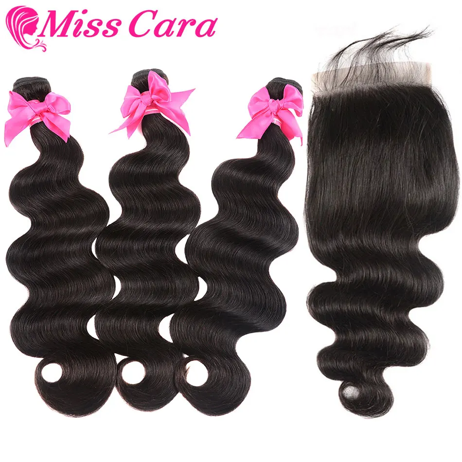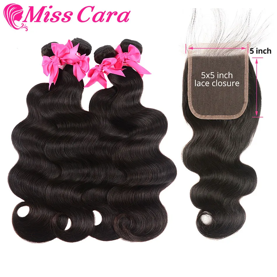 Product Name: Miss Cara Remy vague de corps avec 5x5 fermeture cheveux brésiliens armure faisceaux avec fermeture 100% cheveux humains 3 4 faisceaux avec fermeture