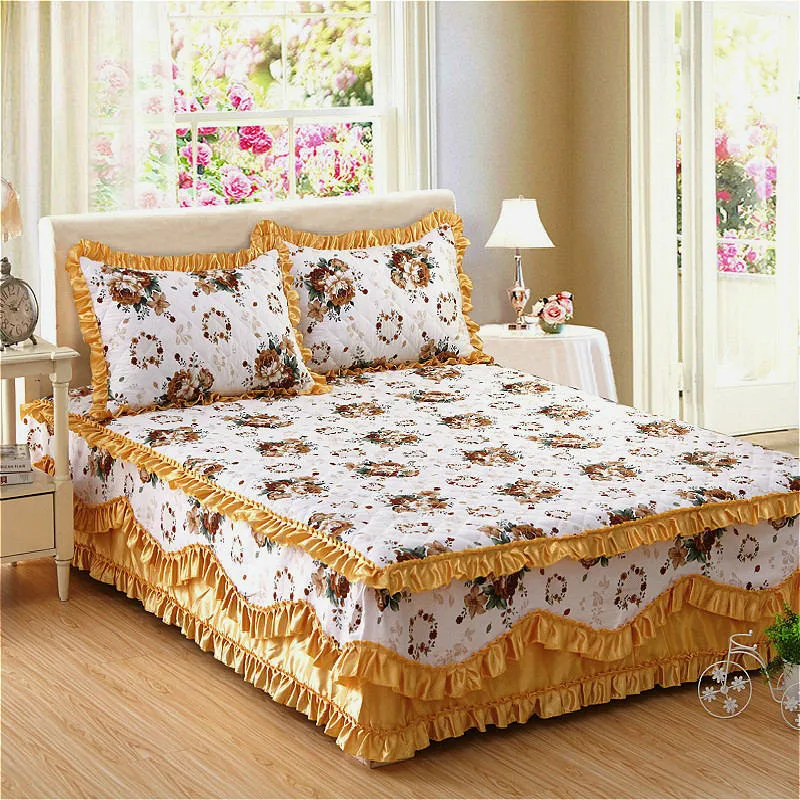 Special Offer Famvotar fantaisie coton matelassé dentelle jupe de lit 23 Styles Floral à volants jupe de lit pastorale coton matelassé dentelle couvre lit livraison directe Discount 0% Today!
