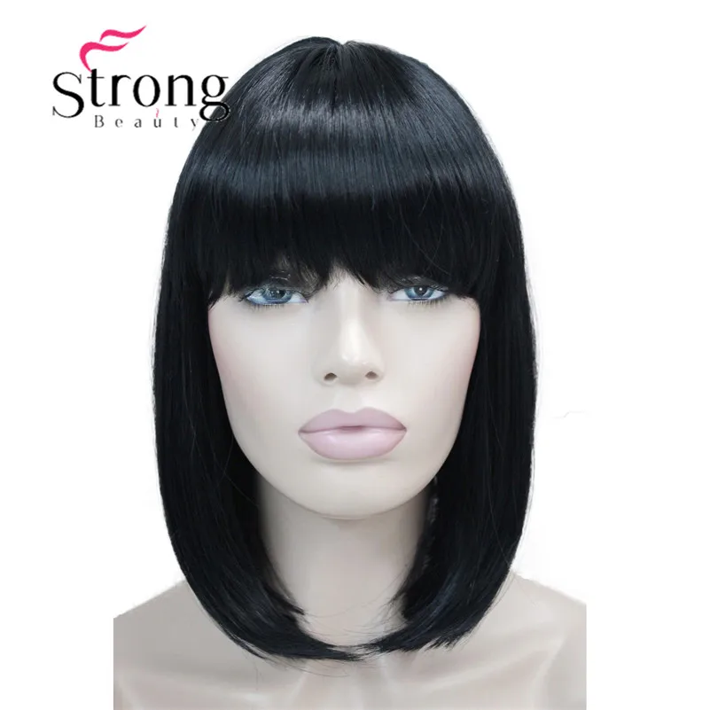 Product Name: Strong beauty court droit blond mis en évidence Bob avec frange perruque synthétique noir brun rouge femmes perruques choix de couleur
