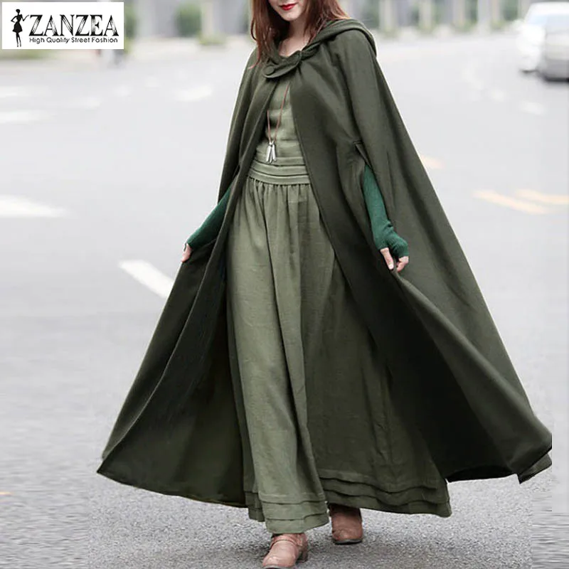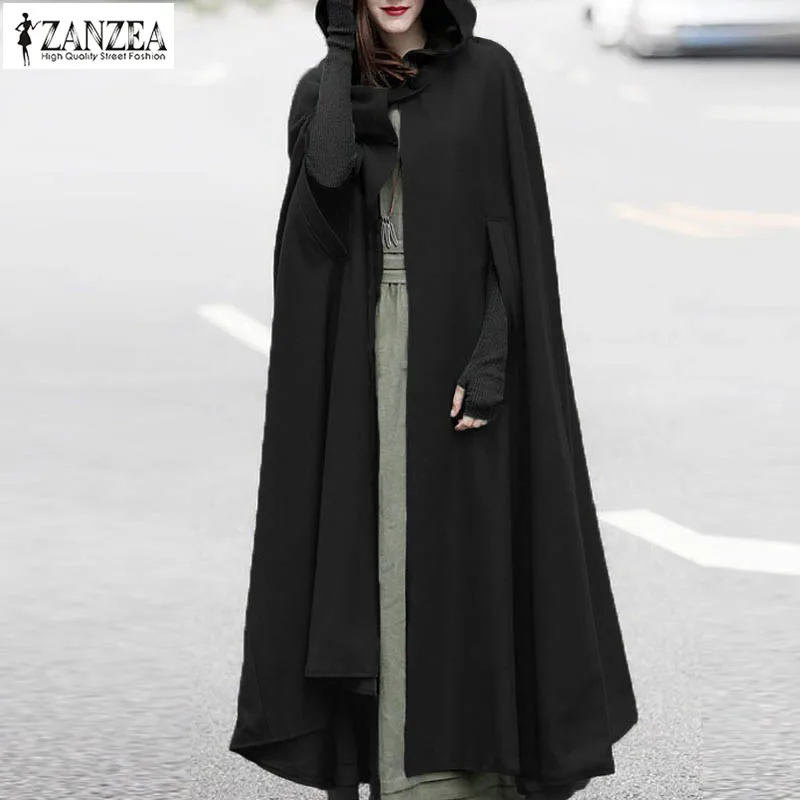Product Name: 2019 grande taille ZANZEA Automne Fête Vestes sweat à capuche Capes Mince Femmes Hiver Long Manteau Veste Cape Poncho Cardigan