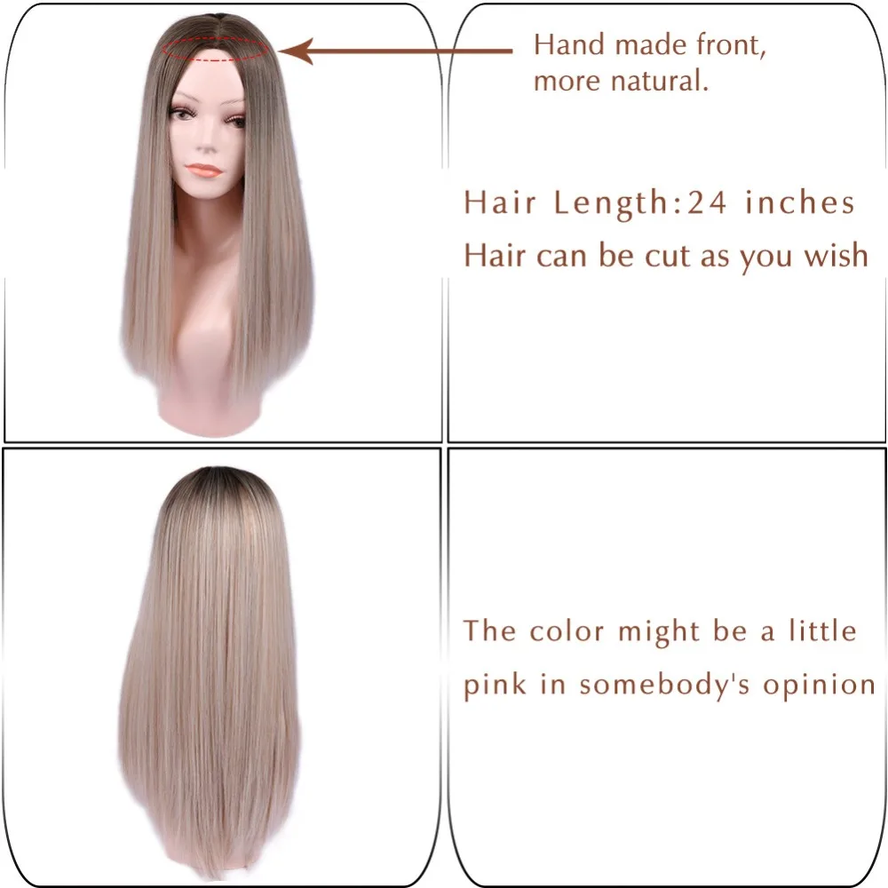 Product Name: Wignee cheveux longs raides partie moyenne perruque synthétique pour les femmes Ombre Baby Ash blond rose rouge marron bleu cheveux naturels femme perruque