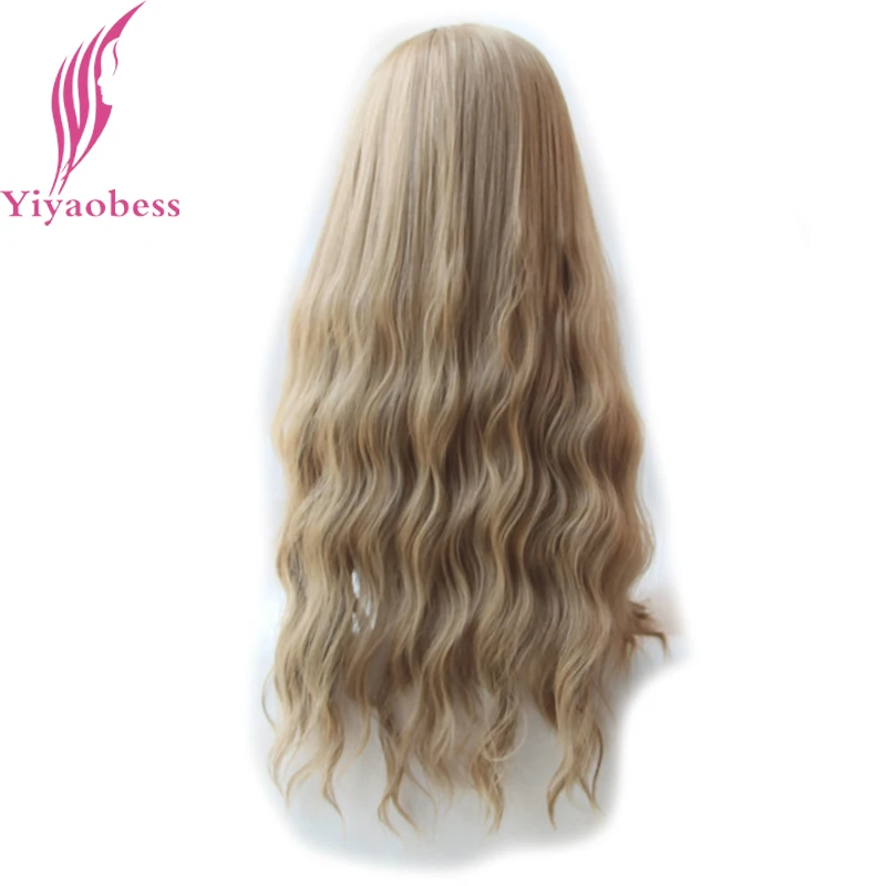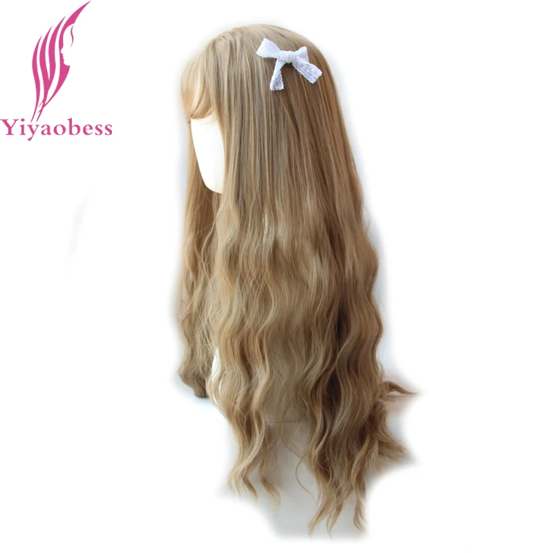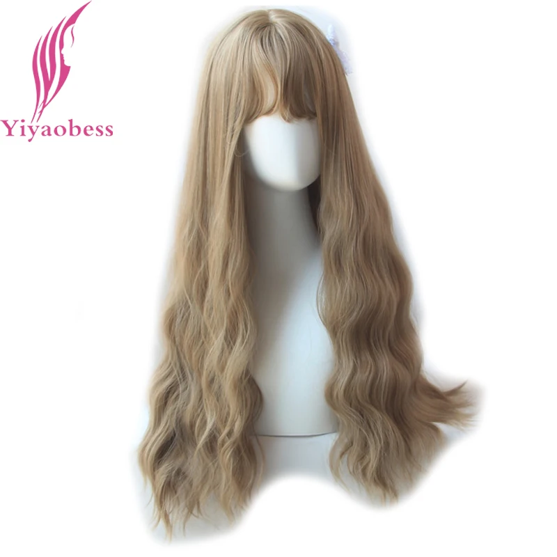 Product Name: Yiyaobess 65cm longues perruques ondulées avec frange résistant à la chaleur cheveux synthétiques noir lin brun violet lumière doré perruque livraison gratuite