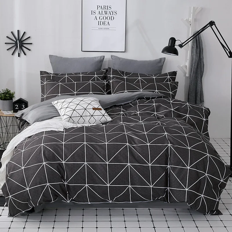 Product Name: 100% coton satin ensemble de literie couette ensemble de literie housse de couette drap de lit oreiller housse de couette simple Double reine taille matelassée