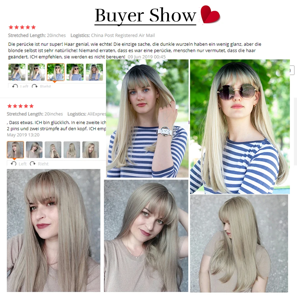 Special Offer Blonde licorne 18 \"Long droit femmes perruques avec frange Ombre brun synthétique naturel cheveux perruques pour femmes afro américaine Discount 34% Today!