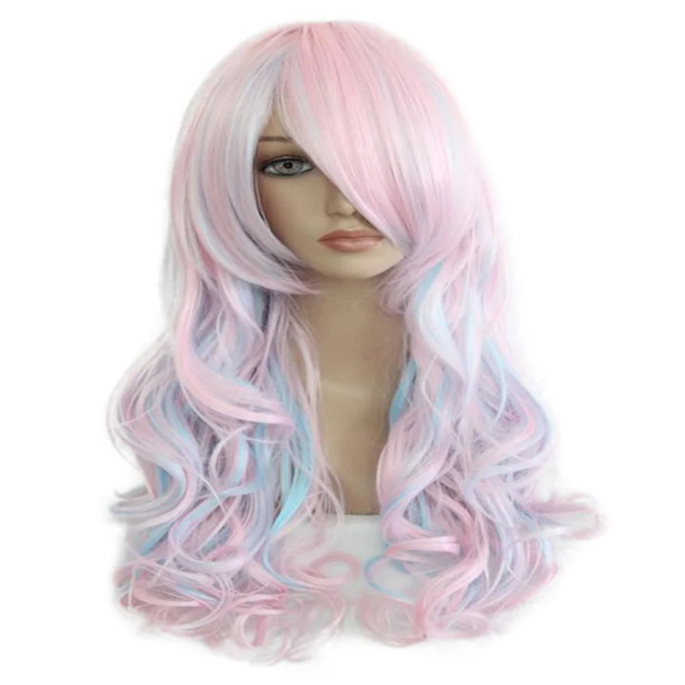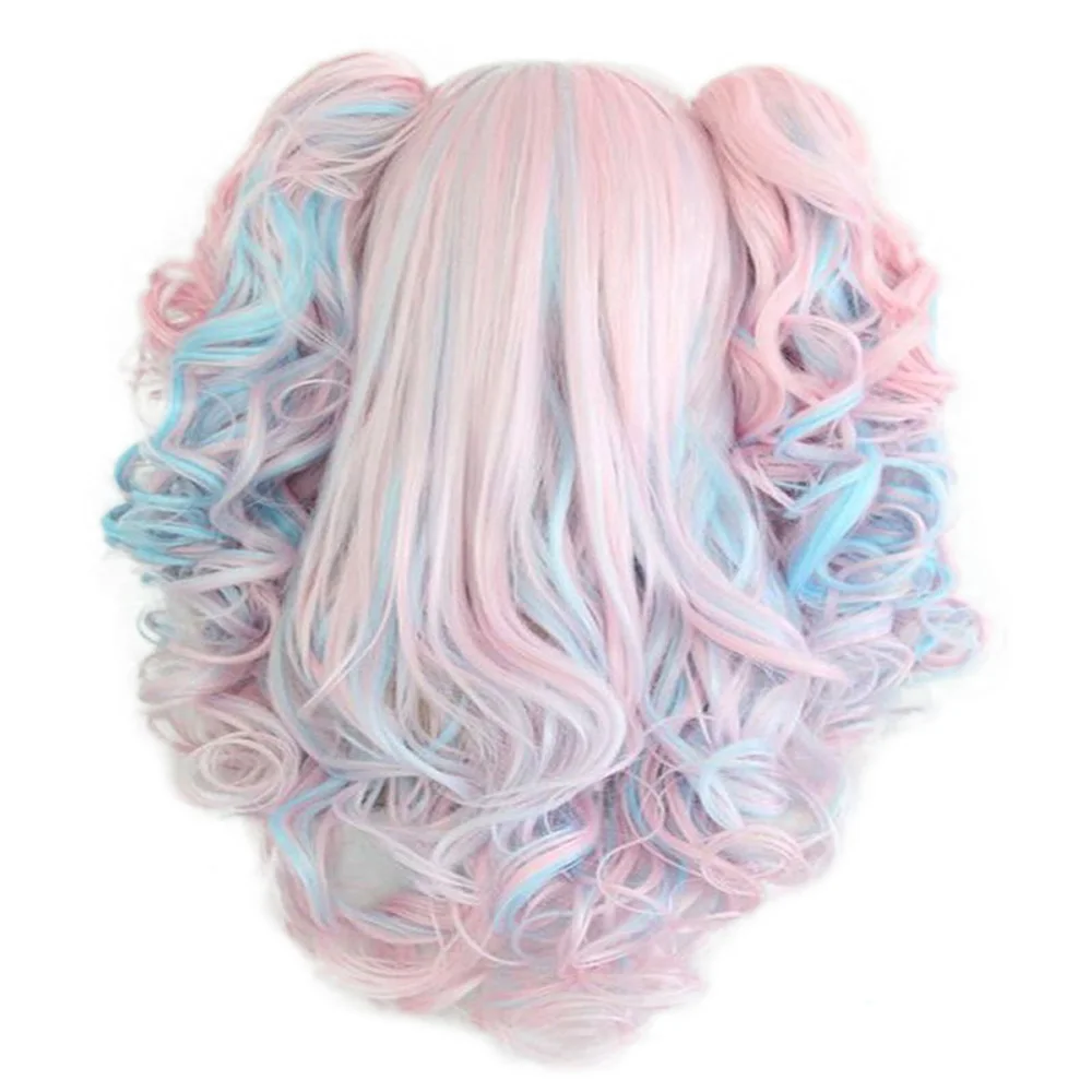 Special Offer HAIRJOY femmes 70 cm de Long bleu mélangé rose ondulé tressé 2 queues de cheval synthétique fête Cosplay perruque 15 couleurs disponibles Discount 10% Today!