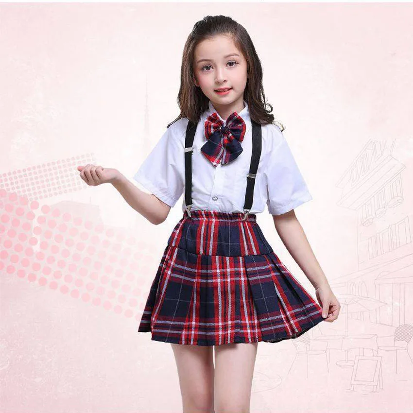 Special Offer 100 170cm enfants vêtements ensemble hauts + jupe + sangle adolescent filles Plaid étudiant école uniforme pour enfants garçons choeur Costumes Discount 39% Today!