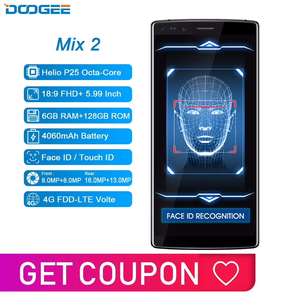 Special Offer DOOGEE Mix 2 6 go RAM 128 go ROM Android 7.1 4060mAh 5.99 FHD + Helio P25 Octa Core Smartphone Quad caméra 16.0 + 13.0MP 8.0 + 8.0MP Discount 25% Today!