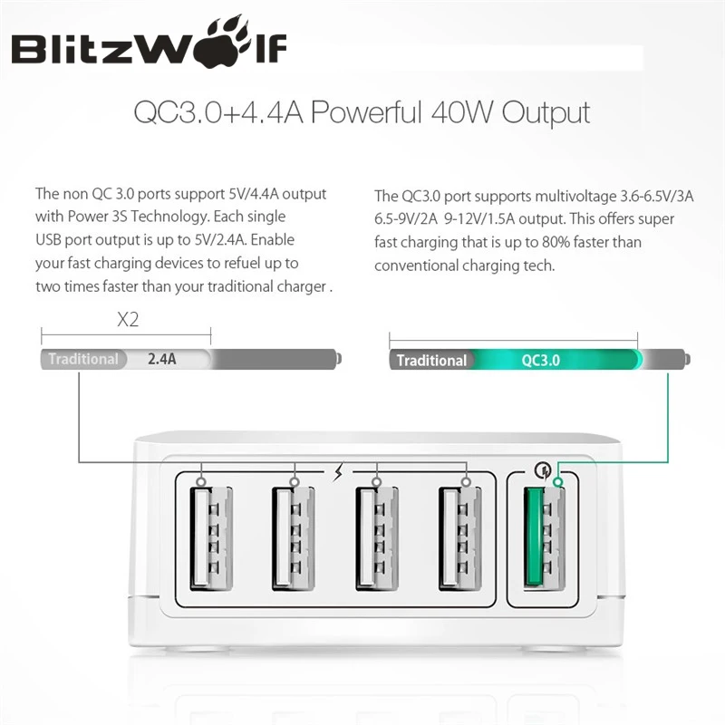. (35% Off) Achat BlitzWolf BW S7 Charge rapide QC3.0 adaptateur USB chargeur intelligent 5 ports chargeur de bureau téléphone portable chargeur de voyage pour Smartphone Pas Cher En Ligne.
