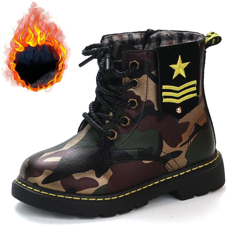 Product Name: Hiver garçon bottes enfants chaussures nouveau garçon en cuir véritable mode Martin bottes étudiant baskets Plus velours chaud enfants bottes de neige
