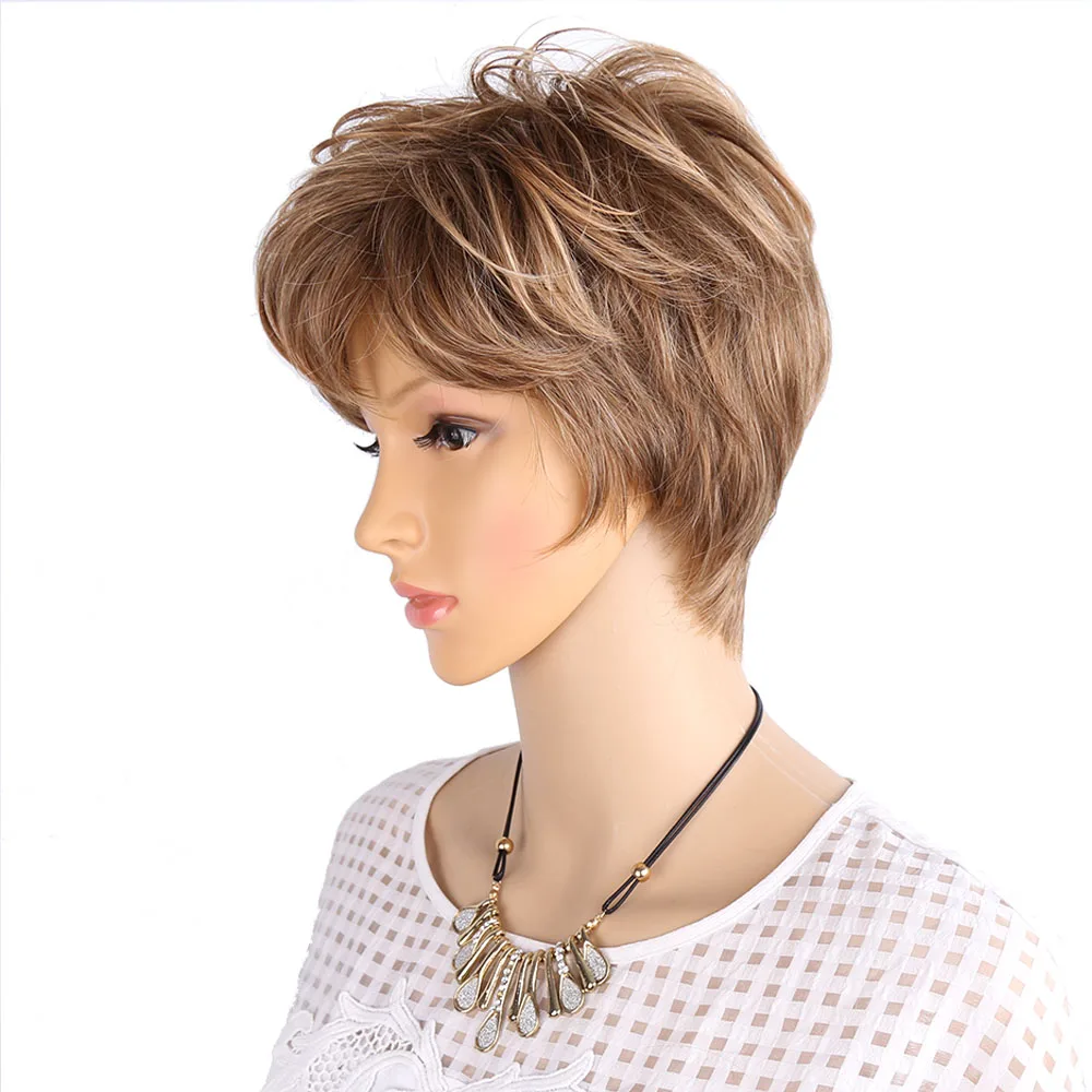 Product Name: Amir perruques courtes moelleuses pour les femmes blanches perruque Blonde synthétique courte perruque de cheveux bouclés Ombre couleurs marron pour un usage quotidien