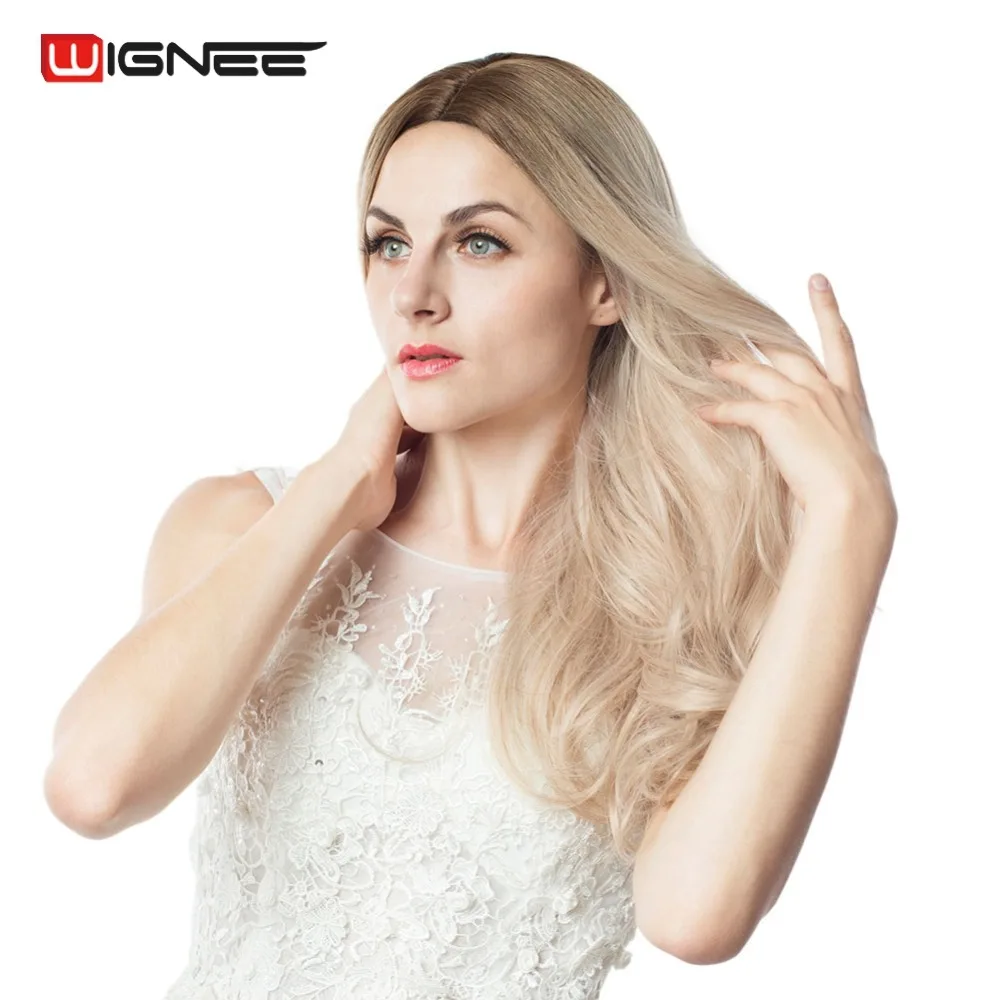 Special Offer Wignee Long 2 tons Ombre brun cendré blond température perruques synthétiques pour noir blanc femmes sans colle ondulé quotidien Cosplay perruque de cheveux Discount 26% Today!