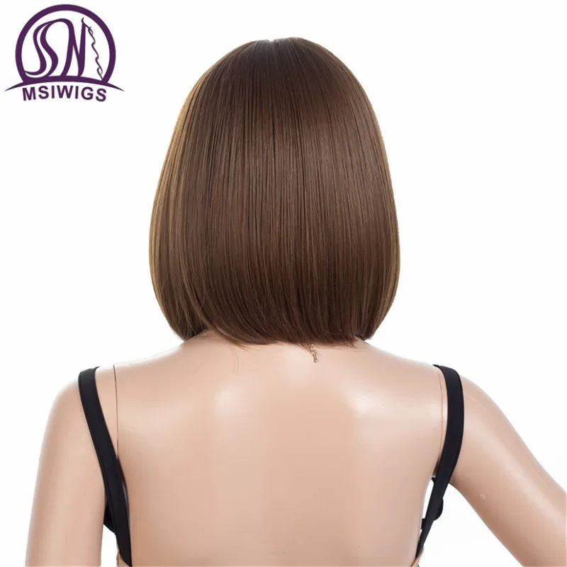 Product Name: Perruques courtes marron perruques courtes Style Bob perruque de femmes noires synthétiques droites avec frange 12 pouces perruque Blonde cheveux doux