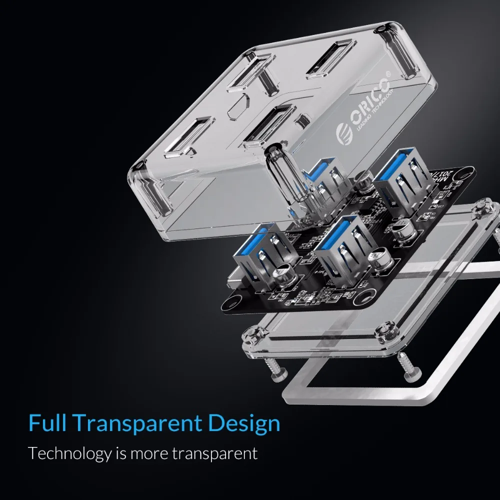 Special Offer ORICO HUB USB Transparent 4 Ports USB3.0 adaptateur diviseur prise en charge externe Micro USB alimentation pour accessoires d ordinateur portable de bureau Discount 45% Today!