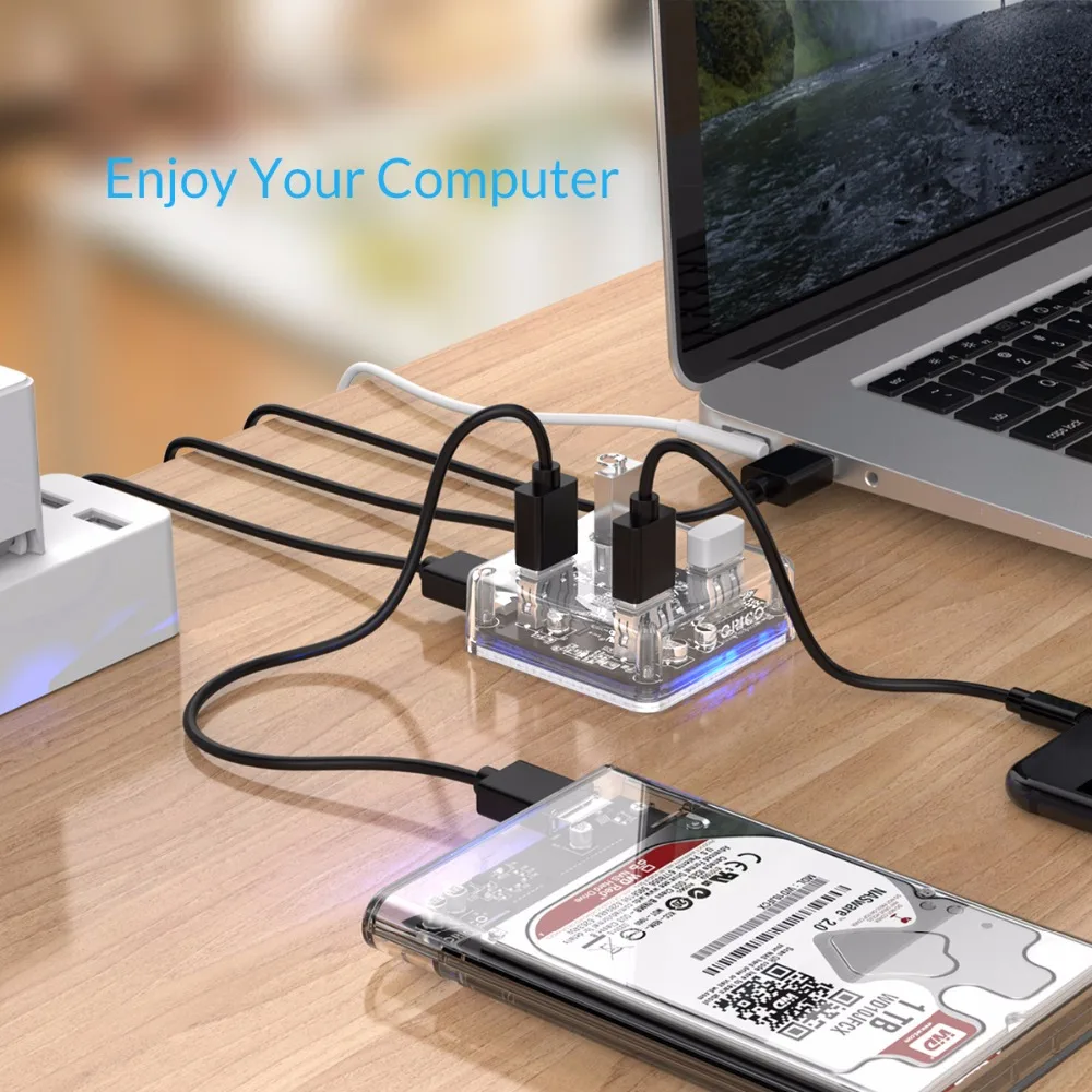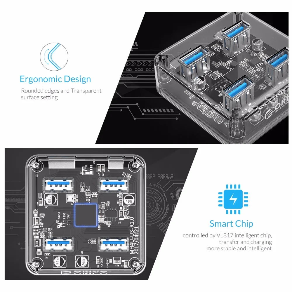 . (45% Off) Vente ORICO HUB USB Transparent 4 Ports USB3.0 adaptateur diviseur prise en charge externe Micro USB alimentation pour accessoires d ordinateur portable de bureau Pas Cher Prix.