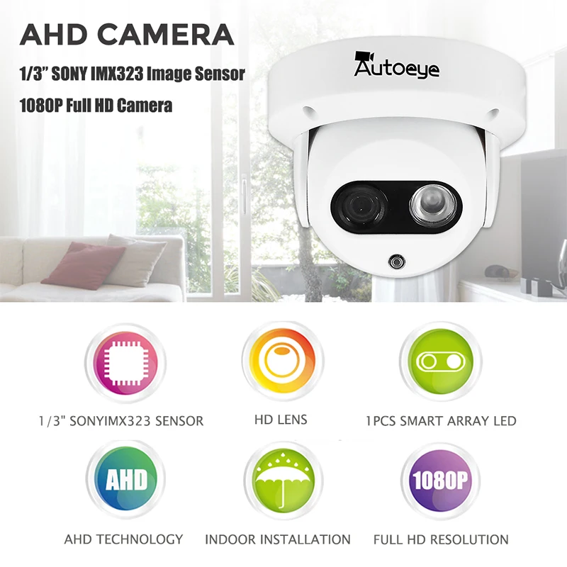 Product Name: Autoeye AHD caméra 1080P Sony IMX323 2MP caméra de Surveillance vidéo IR Vision nocturne 30M caméra dôme intérieure caméra de vidéosurveillance de sécurité