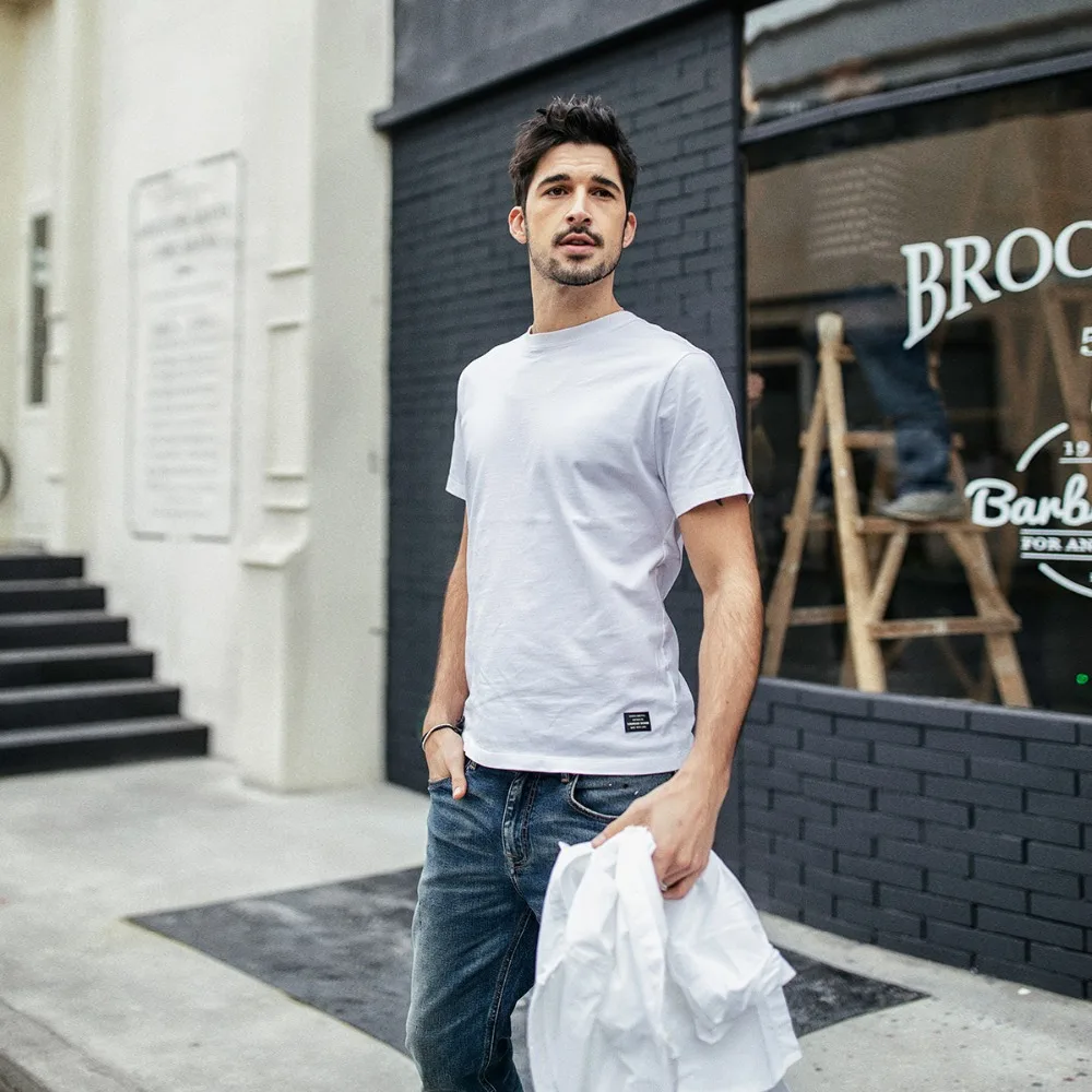 Product Name: SIMWOOD 2019 été nouveau T Shirt hommes 100% coton couleur unie décontracté t shirt bases o cou haute qualité grande taille mâle Tee 190004