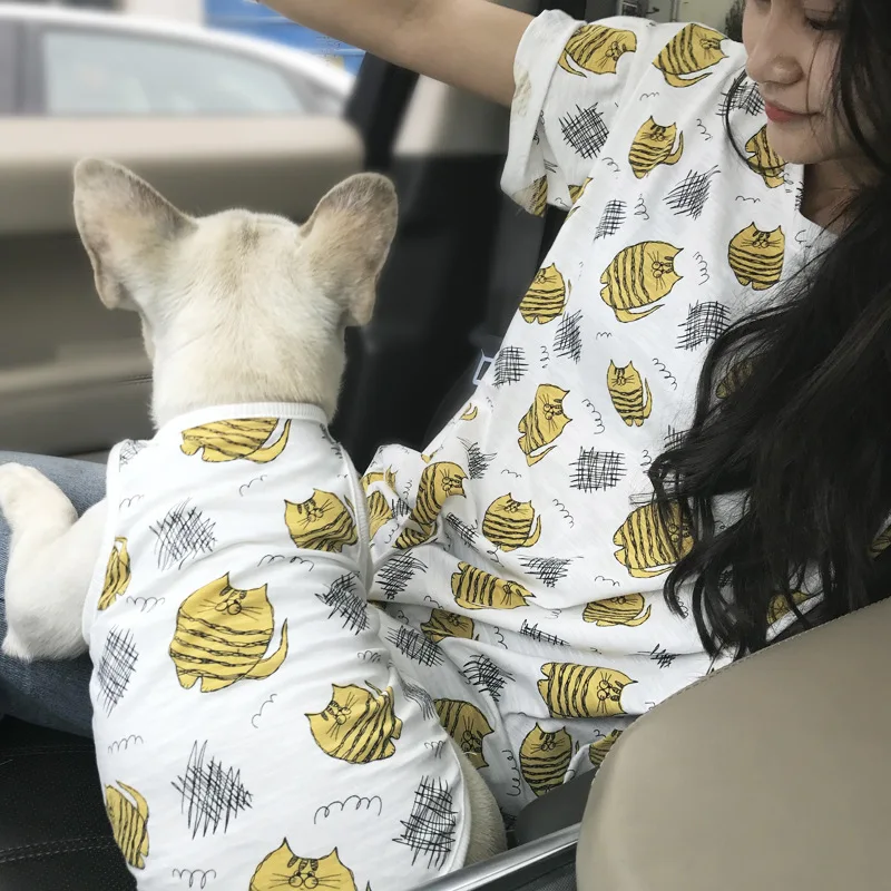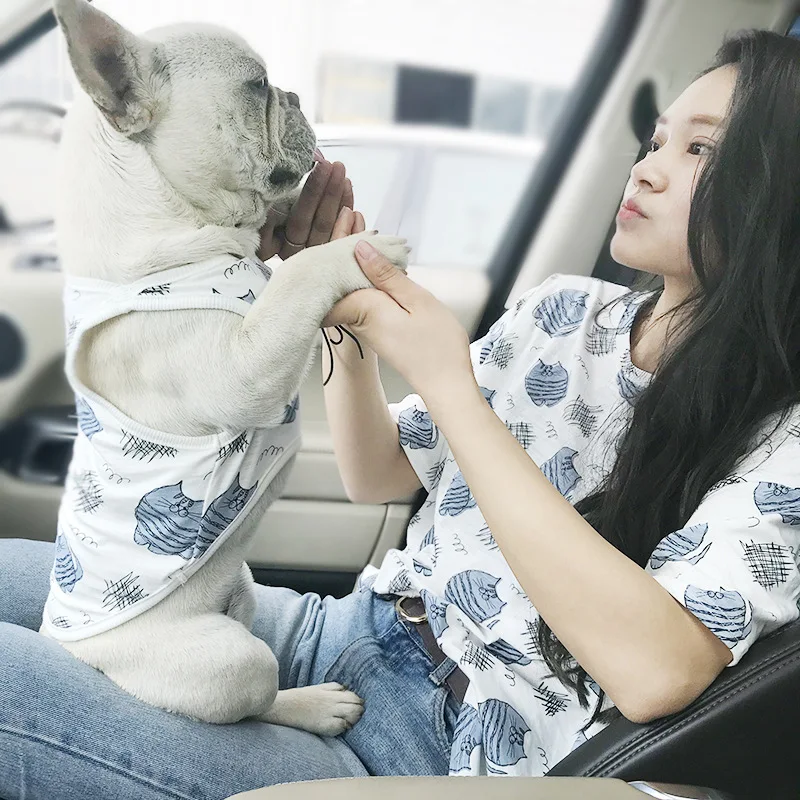 Special Offer 2019 été nouveau chat Parent enfant porter mince gilet beauté court bleu chat chien vêtements Version coréenne complet imprimé à manches courtes Discount 0% Today!
